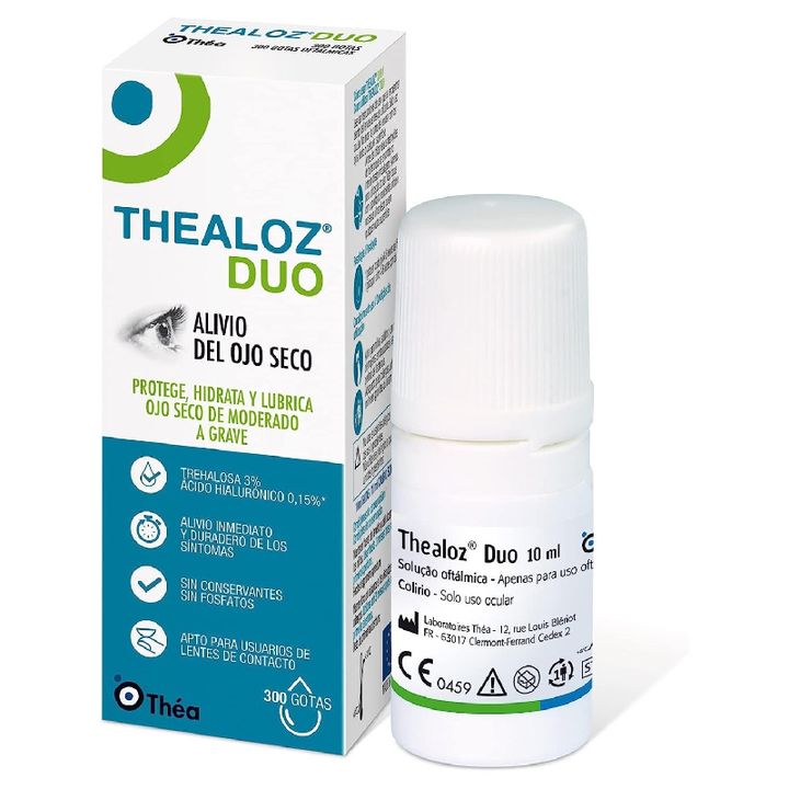 Thealoz Dúo 10 ml hidrata los ojos durante más tiempo, ayudando a combatir y reducir las sensaciones de ardor, irritación y picores en los ojos debido a la resequedad. Mejora la zona lagrimal y mantiene los ojos hidratados durante más tiempo. Se puede utilizar incluso con lentes de contacto.
